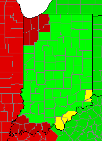 The issue goes beyond the five counties highlighted as residents of neighboring counties also get caught up in questioning whether a stated time is "fast time" or "slow time". Along the Michigan and Ohio state lines the question would be whether a stated time was "Indiana Time" or "Michigan Time" or "Ohio Time" - with that time being different seven months out of the year. (The issue of "fast time" in Dearborn County was referred to on an episode of The West Wing ) People near the border in other states would be more aware of the time difference and when what time applied. But the further one goes from the state the less likely a person would know exactly what time was observed when. Such confusion is not good for commerce. In a global economy where Indiana is reaching out for business across all of North America and the world time zones that honor Daylight Saving Time are an important part of maintaining our place in the world, following a standard of time that does not need to be explained. The Daylight Saving Time issue does not affect the Central Time counties as the consensus there is to always follow DST. Not following CST would lead to a situation where counties in Indiana would be an hour behind the time in neighboring Illinois and Kentucky, effectively on "Mountain Time" (the same time as Denver Colorado) during the summer months. The other debate: Eastern Time vs Central Time | ||||||