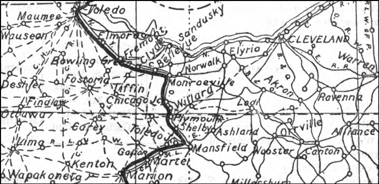 ![]() The original time zone boundary through northern Ohio. The boundary above was officially in effect January 1 through June 1, 1919. | |