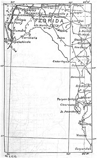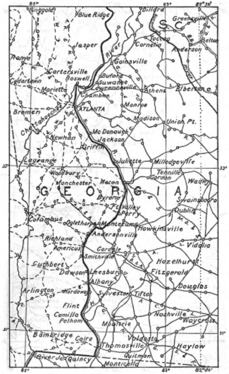 Georgia. -- From the last-mentioned point west along said state boundary line to the east line of Union county, Ga.; thence southerly along the east lines of Union, Lumpkin, Dawson, and Forsyth counties and the south line of Milton county, Ga., to the eastern line of Cobb county, Ga.; thence southerly to Atlanta, there crossing the Southern Railway and the Seaboard Air Line Rail way; thence southeasterly and immediately south and west of and parallel with the line of the Southern Railway to Macon, there crossing the Central of Georgia Railway; thence southerly and immediately west of and parallel with the Georgia Southern & Florida Railway to Sofkee; thence southerly to the connection of the Central of Georgia Railway and the Ocilla Southern Railroad at Perry; thence southwesterly to the southwest corner of Houston county; thence southerly and westerly along the southern boundary of Macon county to the Central of Georgia Railway; thence Southerly and immediately east of and parallel with said last-mentioned railway to Americus; thence crossing the Seaboard Air Line Railway, southerly and immediately east of and parallel with the Central of Georgia Railway to Albany, there crossing the connection between the Seaboard Air Line Railway, Central of Georgia Railway, Atlantic Coast Line Railroad, Georgia Northern Railway, and the Georgia Southwestern & Gulf Railway; thence southerly immediately west of and parallel with the Atlantic Coast Line Railroad to the north boundary of Florida crossing in said course the Atlantic Coast Line Railroad at Thomasville. Florida. -- From the last-mentioned point westerly along the line between Georgia and Florida to the Apalachicola River; thence southerly along the main channel of the Apalachicola River to Apalachicola Bay and the Gulf of Mexico. 51 I.C.C. 499 Order defining limits of standard time zones, 51 I. C. C., 273, modified so as to include Apalachicola, Fla., within the limits of the Eastern standard time zone. | ![]()