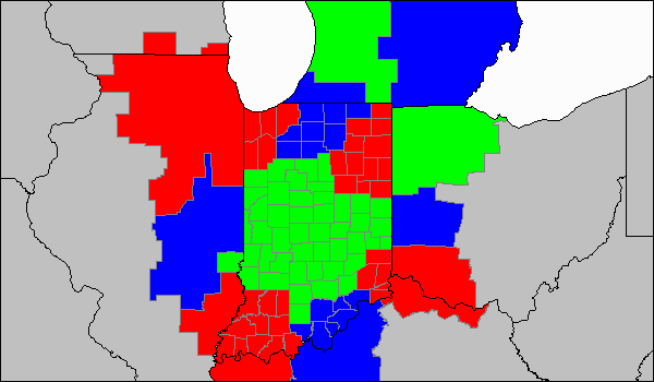 Politicians and residents of St Joseph and Marshall County are typically the leaders of efforts to either move all of Indiana to Central Time or to cease observing Daylight Saving Time. Ending Daylight Saving Time would be a statewide issue (please see Daylight Saving for a discussion). This page will focus on the issue of changing the time zone for South Bend (St Joseph County) and Plymouth (Marshall County), The South Bend TV Market With the majority of TV Stations in the South Bend TV Market being in St Joseph County a change in St Joseph County would affect eight other counties currently on Eastern Time (shown in yellow above). (Starke County is also in the South Bend TV Market but they observe Central Time. LaPorte County and other dark red counties are in the Chicago TV Market.) While not all counties in the South Bend TV Market would be required to move to Central Time with St Joseph and Marshall Counties, the TV market is an area of commerce that is tied together. Viewers in that area see the same TV stations and the same commercials as other viewers in that area. Viewers outside of that area see stations and commercials from other markets. The current time zone boundary follows the TV Market, except for Starke County which has no TV stations and has proven to the USDOT that their commerce connections are stronger to LaPorte and the Chicago market than to South Bend and Indianapolis. Basic Economic Area ![]() Basic Economic Areas are another way the Federal government divides the nation into commerce areas. The South Bend BEA includes all of the counties in the South Bend TV Market plus St Joseph County Michigan. All counties except Starke County (as noted above) are in Eastern Standard Time).