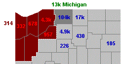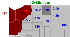 According to figures available from the US Census, 104,227 people resided and also worked in St Joseph County. St Joseph County drew 9,831 workers from Berrien and Cass County Michigan (10,307 from all Michigan counties). St Joseph County drew 4,935 from Elkhart County, 3,260 from Laporte County, 3,181 from Marshall County and 238 from Kosciusko County. More people commute to St Joseph County from Elkhart County alone than all Central Time counties combined (including Illinois). 12,920 commuters leave St Joseph County to work in Elkhart County. 7,790 commuters leave St Joseph County for any other county in Indiana, Michigan or Illinois. It is obvious that there are strong ties between St Joseph and Elkhart Counties. The map above shows the total commuter flow between St Joseph and other counties (inbound and outbound). The map to the right shows Elkhart County's commuter connections.What separates St Joseph County from Elkhart County? Politics. St Joseph County is a "blue" county, generally voting for Democratic party candidates for local and national elections. LaPorte County and others to the west also lean Democratic. Elkhart County and the surrounding counties in Michigan and Indiana are "red" counties, generally voting for Republican party candidates. If time zone boundaries were drawn by political party St Joseph County would be in Chicago Time. Time zones boundaries are drawn based on commerce. Commerce based reasoning should be followed. Results from 2006 If it seems like we have discussed this all before one should look at the results of the last attempt to change the time zone in South Bend. Here is what the DOT wrote about St Joseph County: