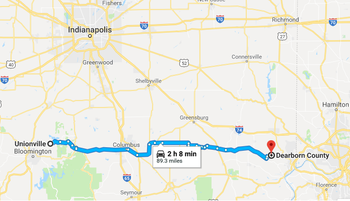 In this scene the characters mention of the time zone changing when crossing over into Dearborn County. This situation ended in 2006 when Indiana began to observe Daylight Saving Time state wide. This episode was originally aired September 25, 2002. There are many problems with this scene - primarily the fact that Dearborn County is not close to Unionville (in Monroe County). Crane Naval Surface Warfare Center is 45 miles southwest of Unionville in Martin County. Josh mentions that he has 15 minutes to reach a plane three miles away. The scene suggests that the fictional air force base the trio was trying to reach was in Dearborn County. What should be noted is that in order for the trio to have their watches set to "12:45" at that moment in the show they would have needed to set their watches to "Eastern Standard Time" (which would have been the official local time for all locations mentioned and the rest of Indiana). Dearborn County was officially (from the US Government perspective) also on Eastern Standard Time. If the fictional air force base Air Force One departed had been in Dearborn County it would have observed the US Government prescribed time for that county - not the locally preferred unofficial time zone. There are other fictionalizations better off ignored. It is a funny scene and it does allow one to consider the problems addressed when crossing a time zone boundary. The frustrations expressed by Josh and Toby needing to do business on the other side of a time boundary have been felt by Hoosiers. Especially in Dearborn County where (until 2006) their official government time chosen by state leaders in Indianapolis was not convenient for doing business in the Cincinnati region. Every time zone has a boundary and while most boundaries are at state lines there are twelve states where the time zone boundary is a county line. Putting those boundaries in the right place - where it is convenient for commerce - is a task delegated to the Secretary of Transportation. ![]() Locations noted on The West Wing. Reynolds AFB does not exist. Crane Naval Surface Warfare Center is 45 miles southwest of Unionville. | ||